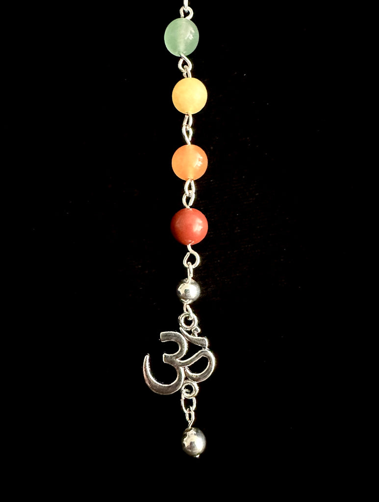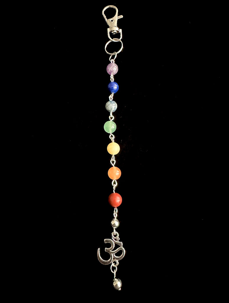 Easily attach the clip to your purse, bag, zipper, or keychain. The crystal gemstones not only add beautiful color, but promote harmony and well-being. It's the perfect gift for crystal healers, yoga enthusiasts, meditation practitioners, or anyone seeking to incorporate more positive energy into their daily routine. Gemstone beads include red jasper, carnelian, yellow jade, green aventurine, sodalite, lapis lazuli and amethyst. Total length is approx 8 inches. Silver Om charm attached to the bottom.