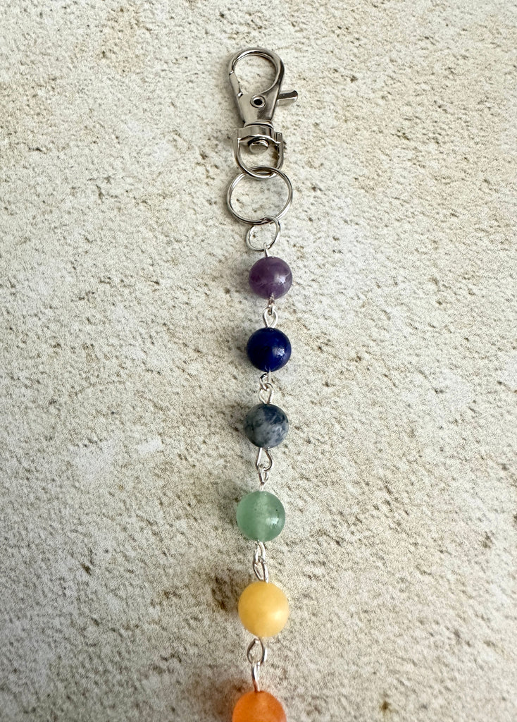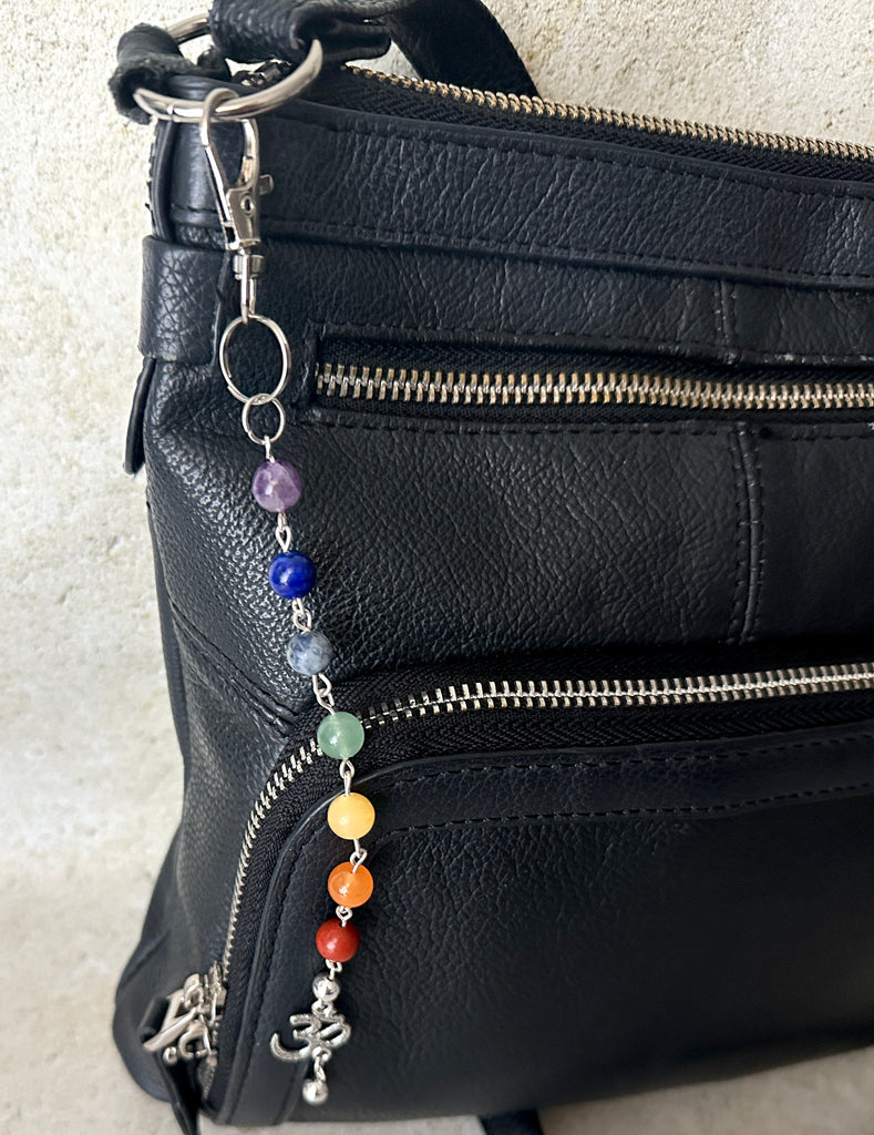 This beautiful chakra gemstone bag charm may appear delicate, but it is filled with positive energy designed to promote calmness and balance.